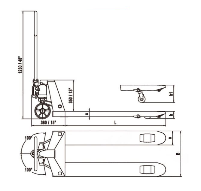 « 油泵带手动缓降阀,增加安全性; « 货叉前段弧形,方便叉托盘; « 三段式手柄:起升、下降、中位; « C型结构货叉可支持重载,兼坚固耐用; « 可手动调节推杆,控制货叉降低高度;