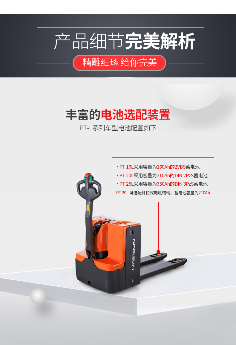 • PT 16L采用容量为160 Ah的 2VBS 蓄电池,从而整车长度更短,增加了在限制操作区域的可操作性。