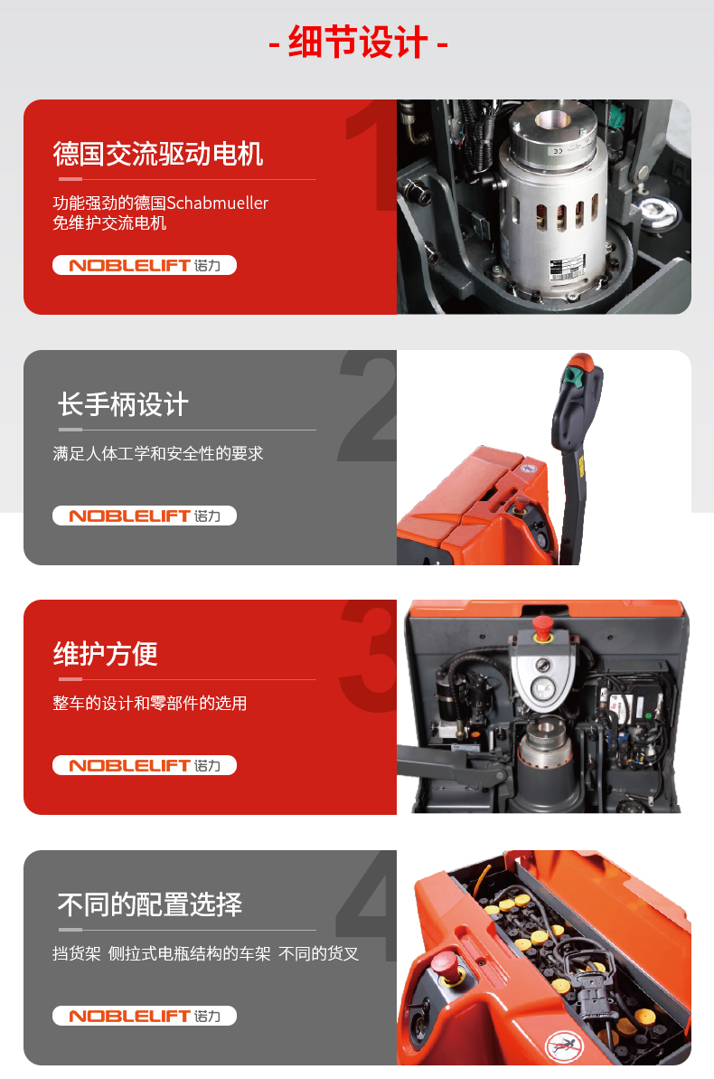 值得一提的是:长手柄的设计使操作者在高效工作的同时,和车体保持一定的安全距离。与短手柄相比,长手柄的操作力更小。操作者可以选择更符合自己操作习惯和更舒适的操作高度。