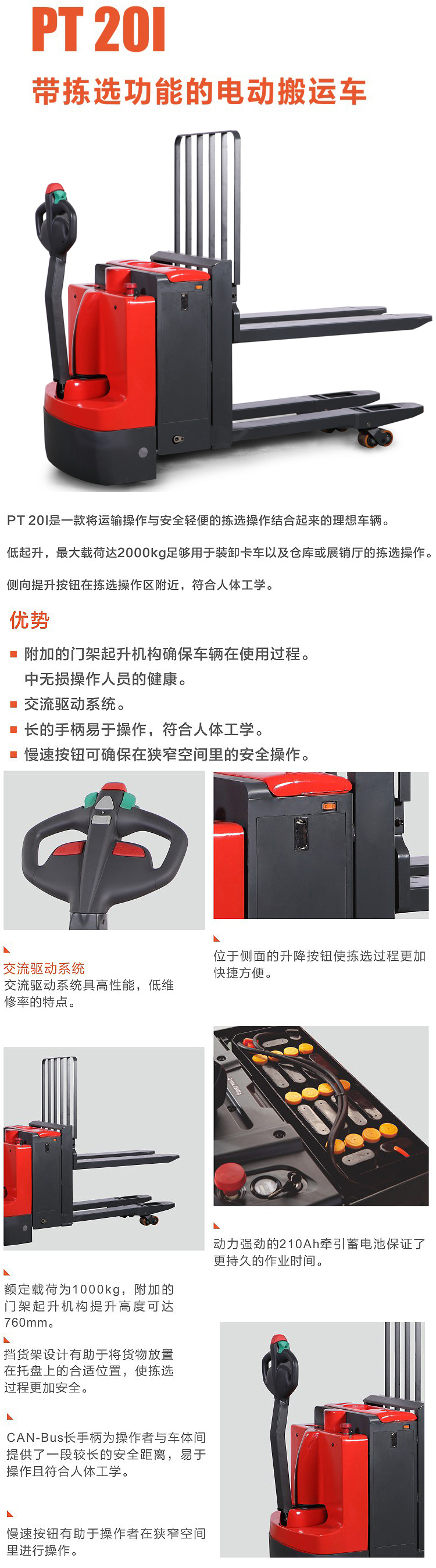 « 诺力PT20I是一款将运输操作安全轻便的拣选操作结合起来的理想车辆。