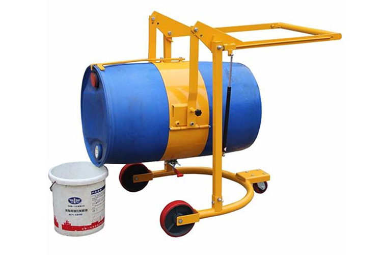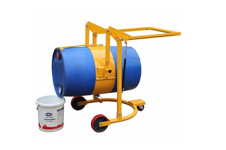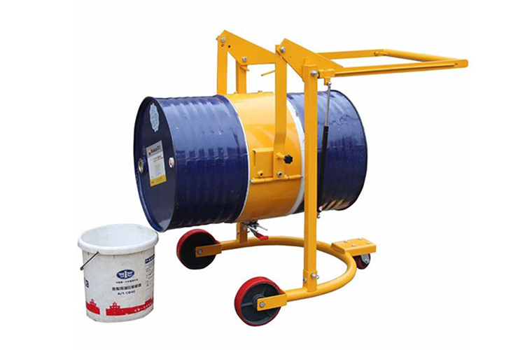 « 夹紧:将油桶立在平地,把搬运车夹紧包匝圈紧靠到油桶。