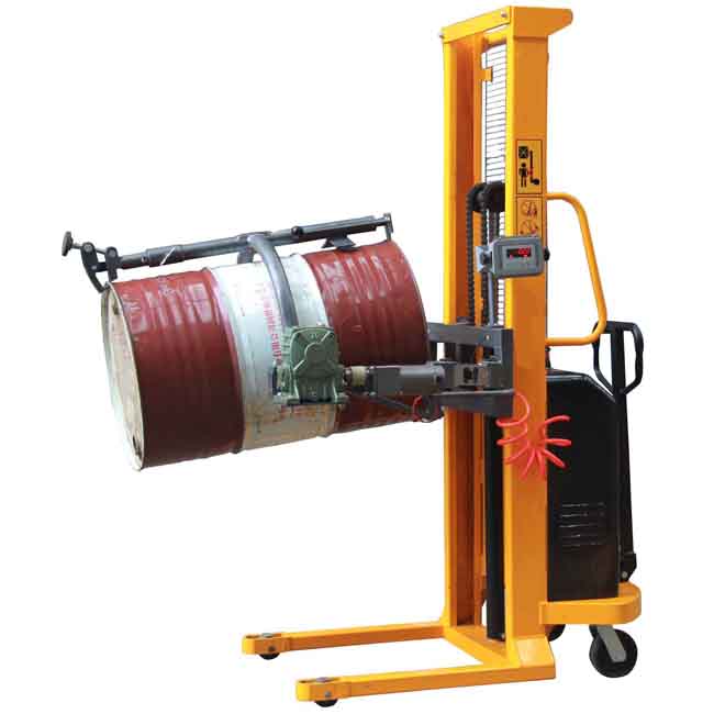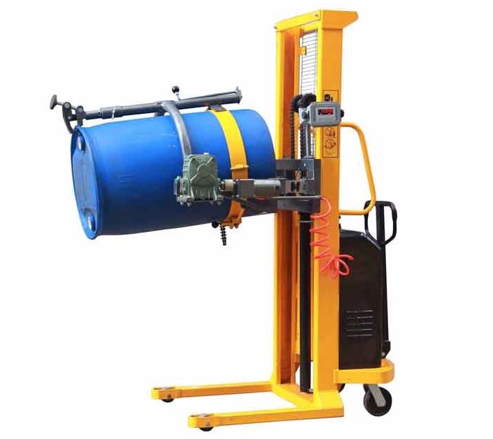 « 油桶翻转车设计结构简单轻巧,电动180度翻转,操作简便省力。