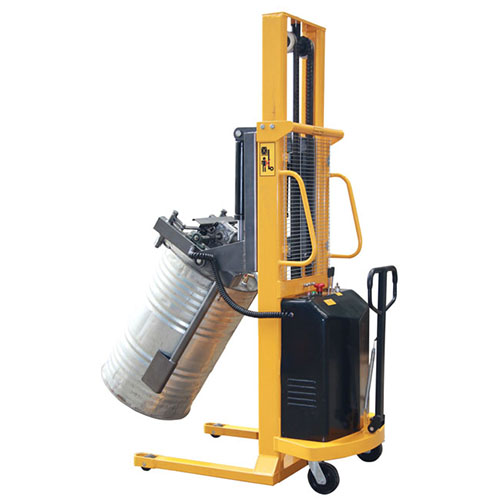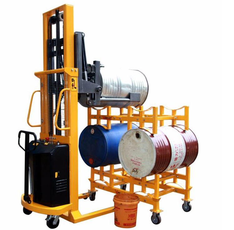 « 可将垂直放置的油桶翻转至与地面成水平状态,便于油桶存放在货架上。