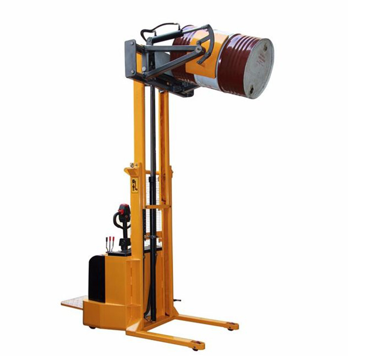 « 全电动油桶翻转车采用电动驱动、电控液压抱夹、电动升高、电控液压翻转方式。