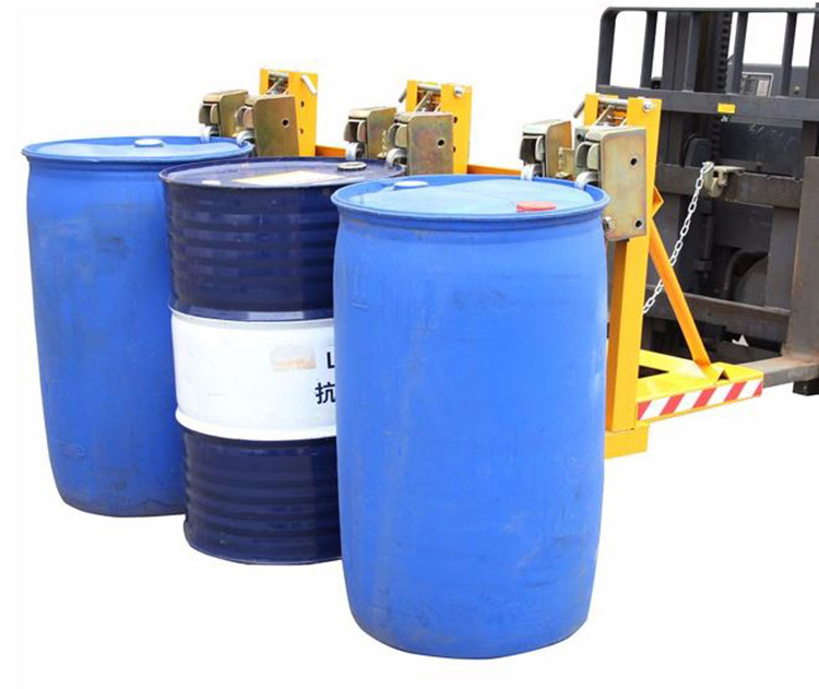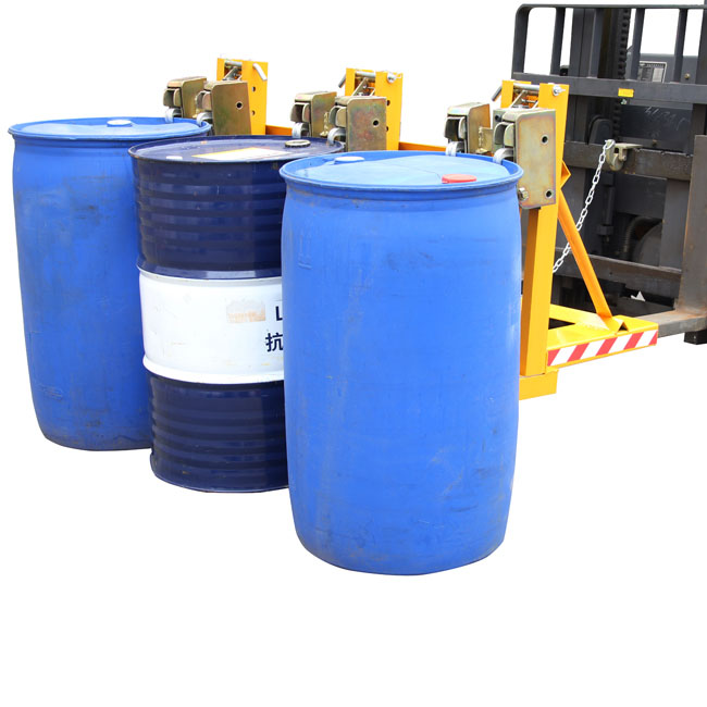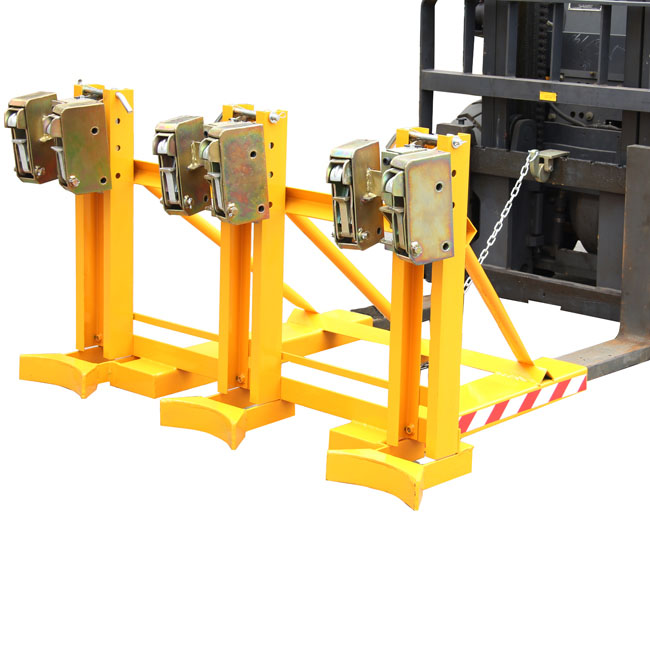« 纯机械结构设计的轻型双鹰嘴三油桶夹具可与叉车方便地配合,仅依靠叉车的