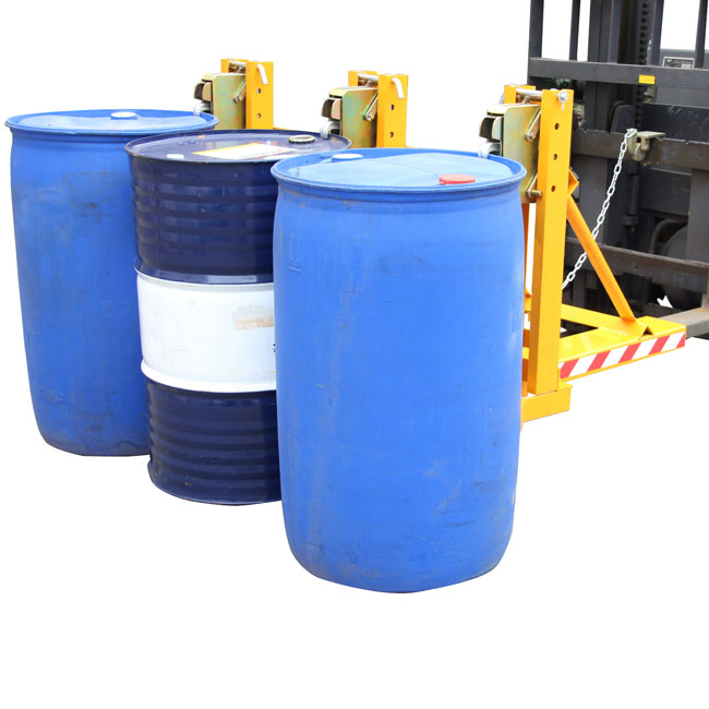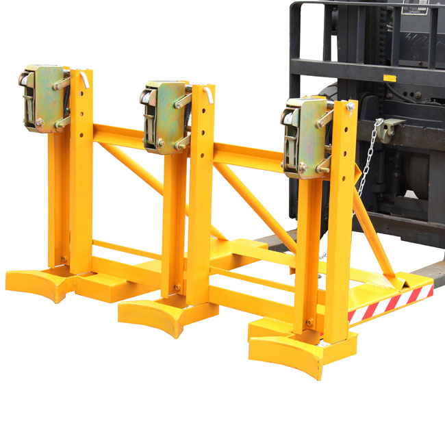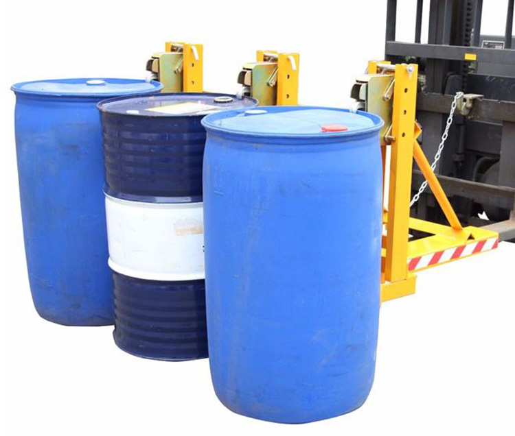 « 纯机械结构设计的轻型单鹰嘴三油桶夹具与叉车方便地配合,仅依靠叉车的动