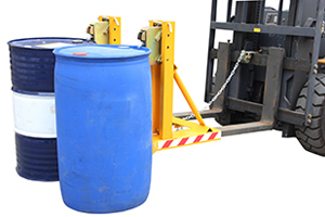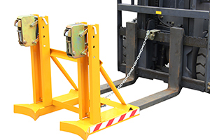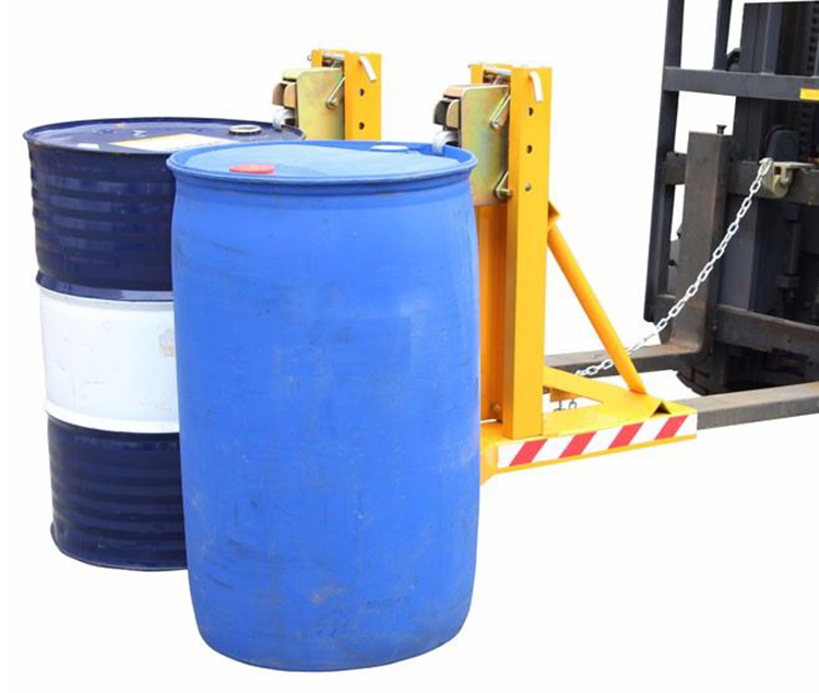 « 纯机械结构设计的轻型单鹰嘴双油桶夹具可与叉车方便地配合,仅依靠叉车