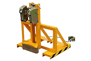 « 纯机械结构设计的重型双鹰嘴单油桶夹具可与叉车方便地配合,仅依靠叉车的动作,不需要其它动力,可自动一次搬运1个桶。