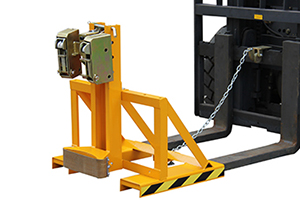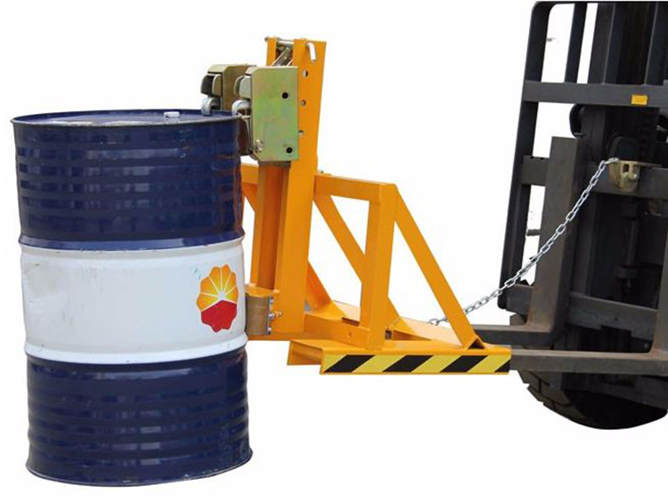 « 与货叉连接配有自锁装置确保油桶夹在坡度上和颠簸路面使用时不会滑落。