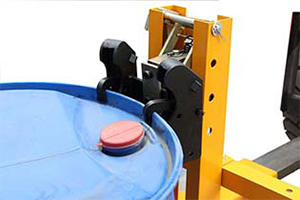 « 与货叉连接配有自锁装置确保油桶夹在坡度上和颠簸路面使用时不会滑落。