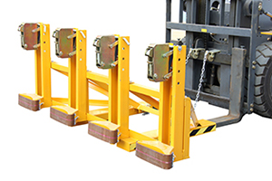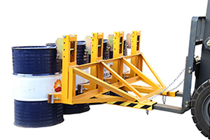 « 纯机械结构设计可与叉车方便地配合,仅依靠叉车的动作,不需要其它动力,可自动一次搬运1-4个桶。
