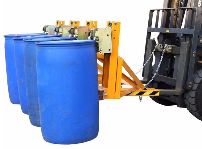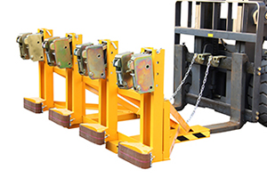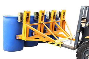 « 纯机械结构设计可与叉车方便地配合,仅依靠叉车的动作,不需要其它动力,可自动一次搬运1-4个桶。