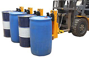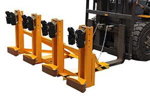 « 纯机械结构设计可与叉车方便地配合,仅依靠叉车的动作,不需要其它动力,可自动一次搬运1-4个桶。