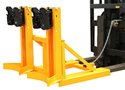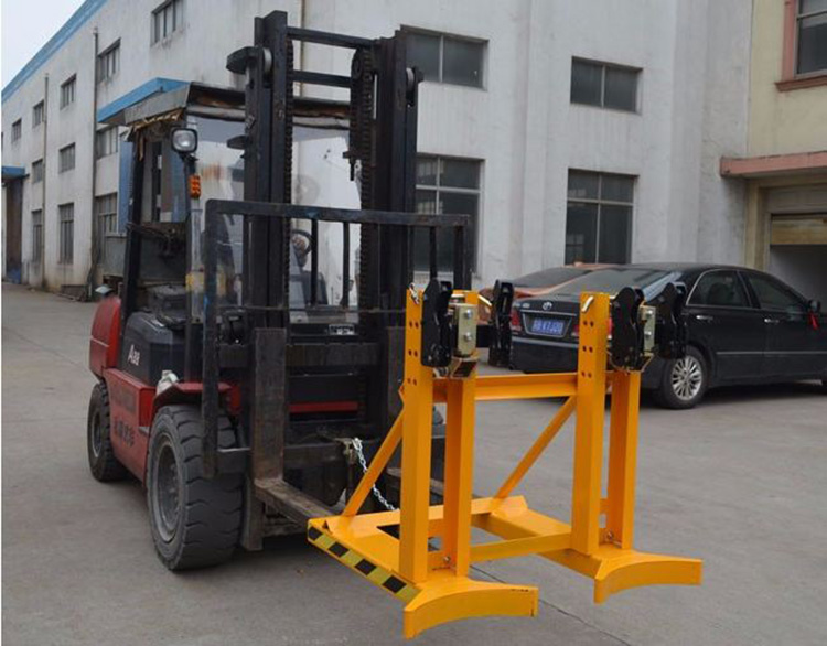 « 纯机械结构设计的轻型双鹰嘴双油桶夹具可与叉车方便地配合,仅依靠叉车的