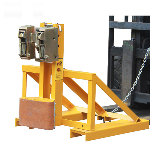 « 纯机械结构设计的重型双鹰嘴双桶夹具可与叉车方便地配合,仅依靠叉车的动作,不需要其它动力,可自动一次搬运1-2个桶。