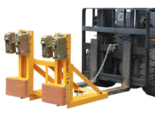 « 与货叉连接配有自锁装置确保油桶夹在坡度上和颠簸路面使用时不会滑落。