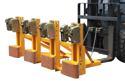 « 纯机械结构设计可与叉车方便地配合,仅依靠叉车的动作,不需要其它动力,可自动一次搬运1-4个桶。