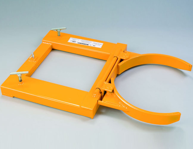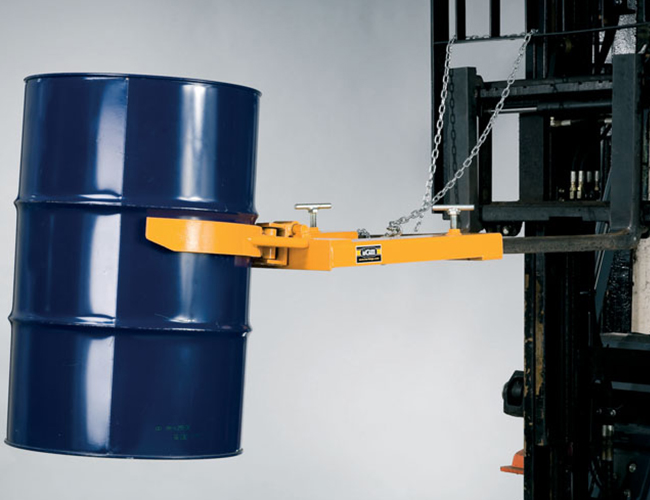 « 叉车专用属具,适用于55加仑钢制油桶搬运、堆放。