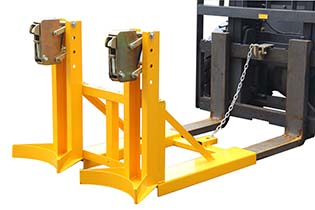 « 与货叉连接配有自锁装置确保油桶夹在坡度上和颠簸路面使用时不会滑落。