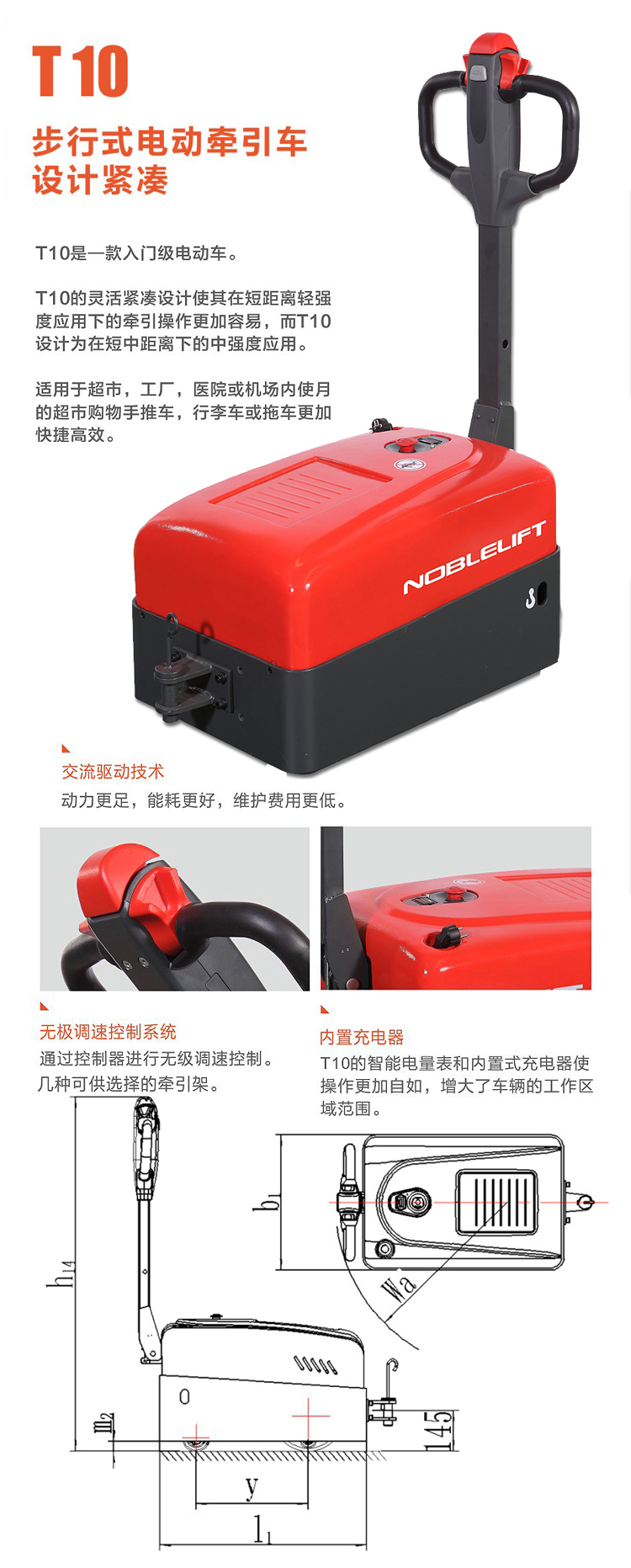 « 诺力T10灵活紧凑设计使其在短距离轻强度应用下的牵引操作更加容易。