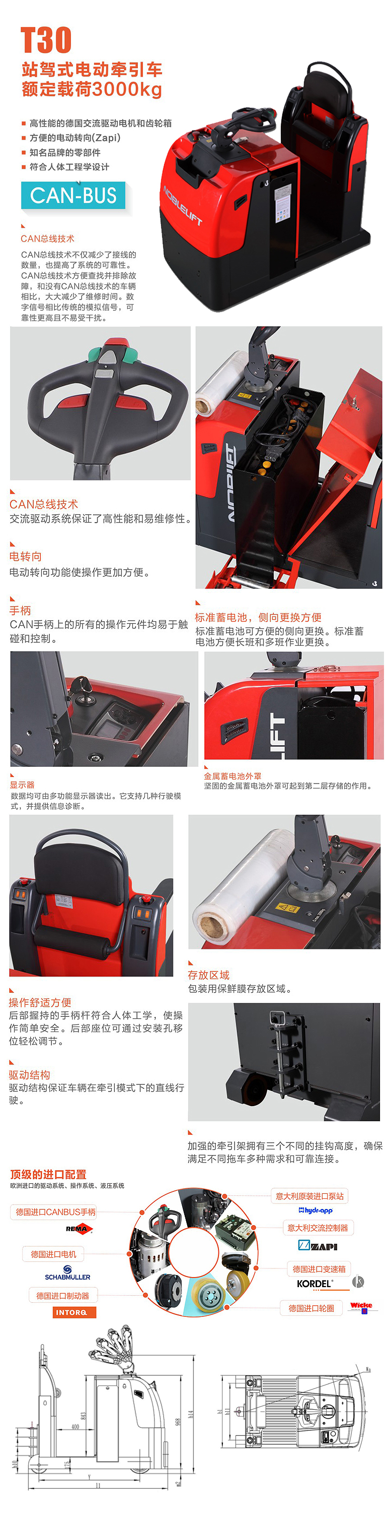« 站驾式踏板结构可以容易而又舒适的完成各项牵引工作,符合人体工程学