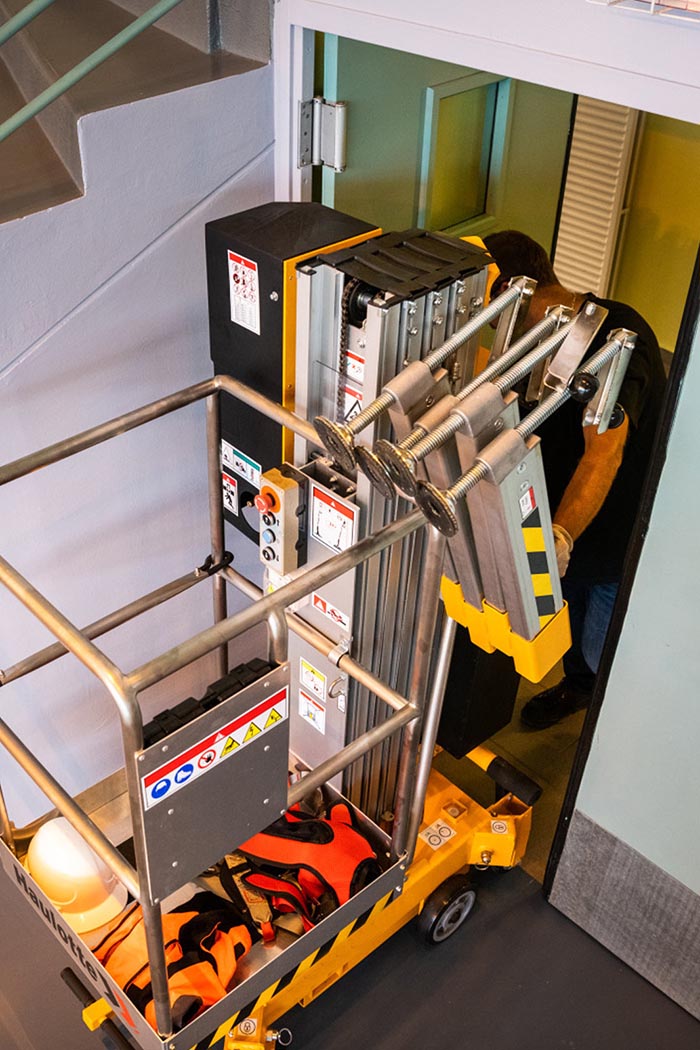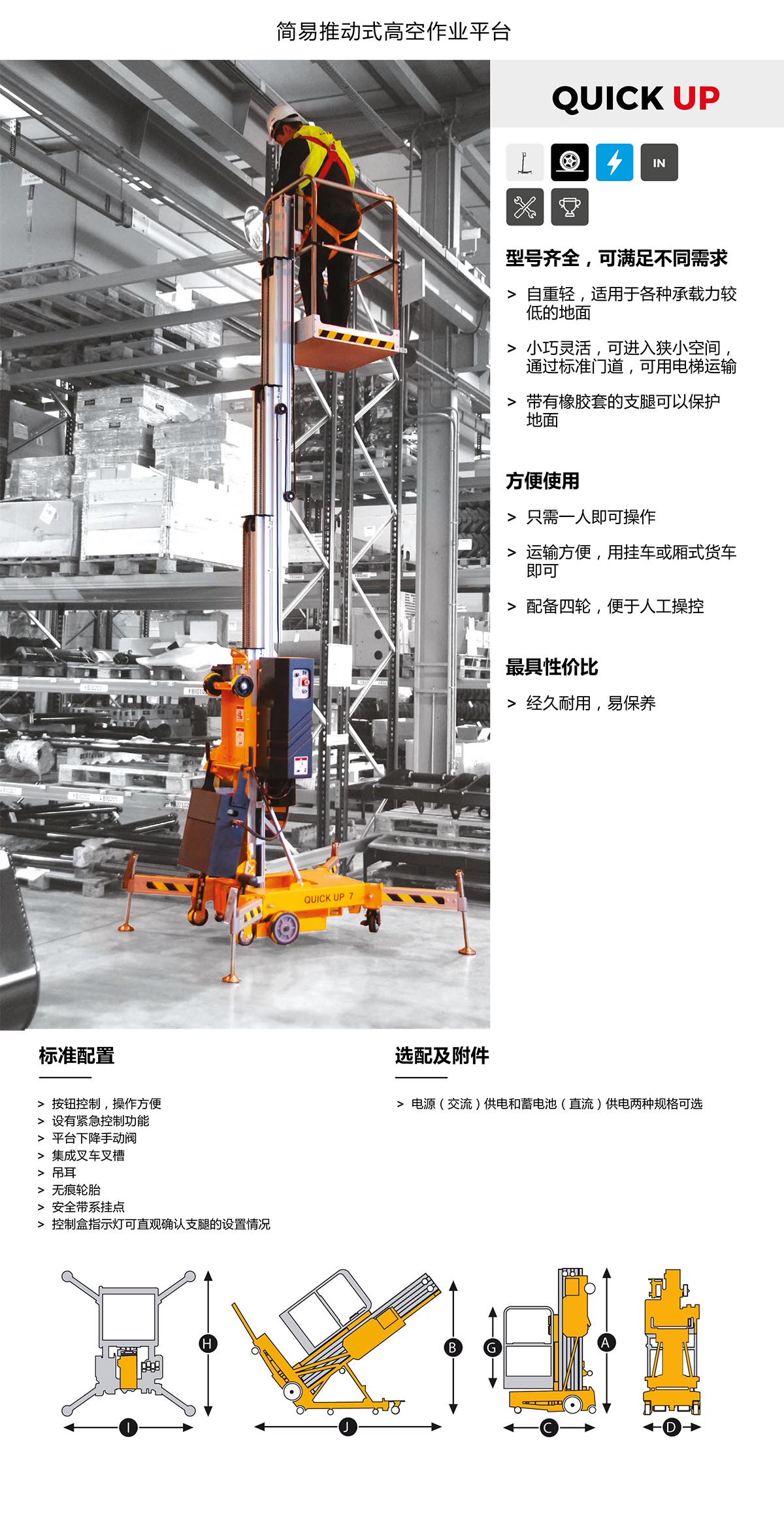 》带有橡胶套的支腿可以保护地面,配备四轮,便于人工操控