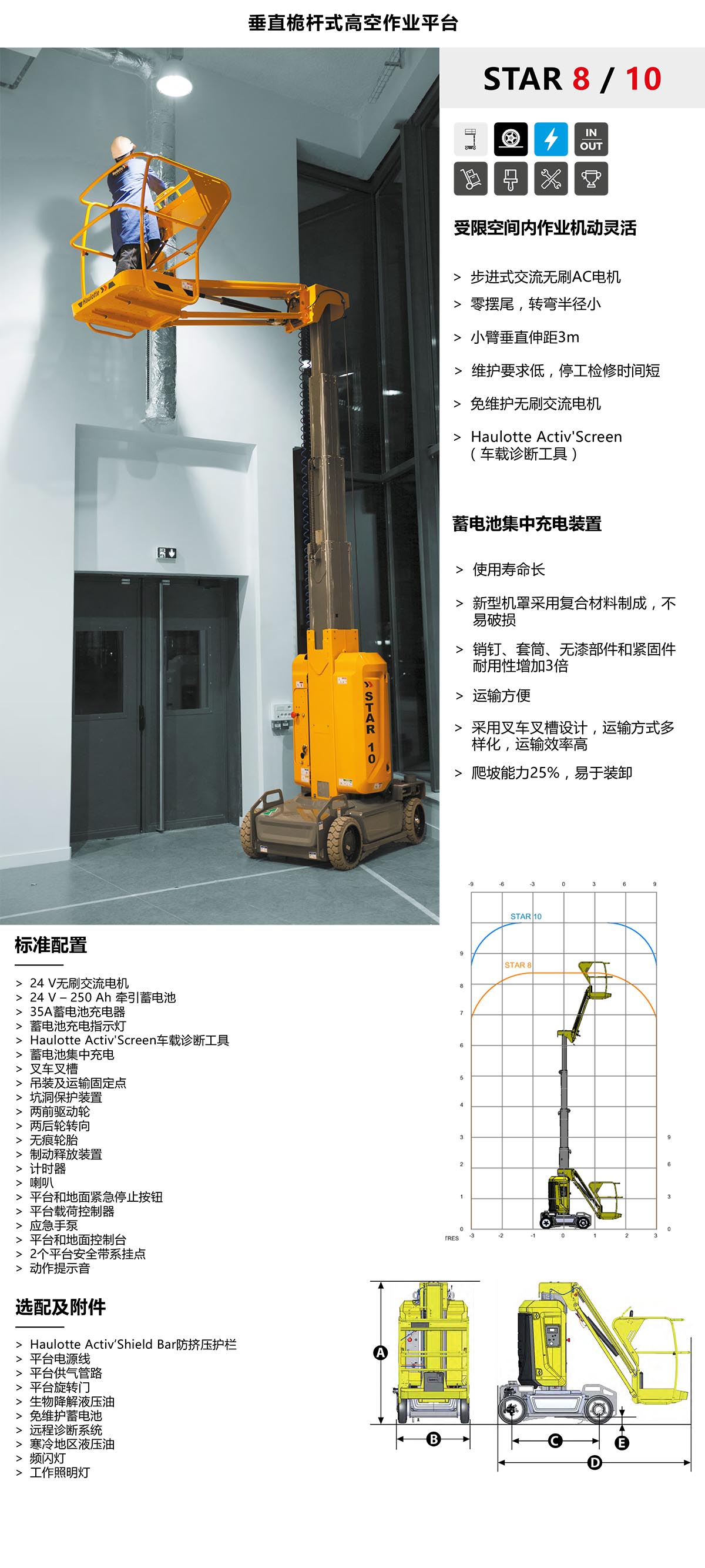 》零摆尾,转弯半径小,小臂垂直伸距3米,受限空间内作业机动灵活