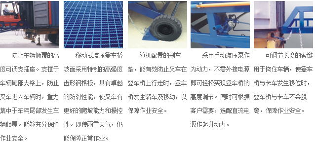 « 采用手动液压泵作为动力,不需外接电源即可轻松实现登车桥的高度调节。