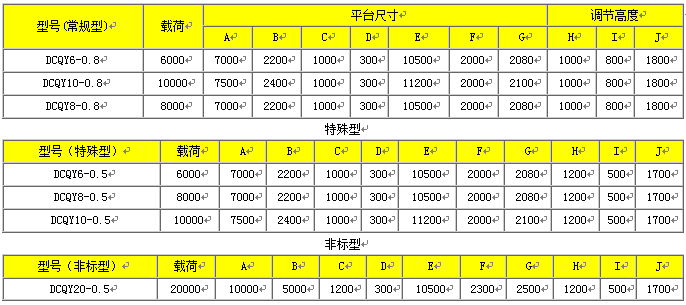| 额定载重 | kg | 6000 | 8000 | 10000 | 20000 | 6000 | 8000 | 10000 |