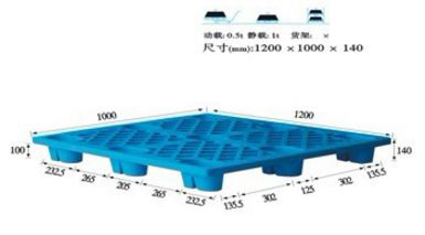单面塑料托盘只能一面使用,表面有网格状和平板状两种,底部有川字型、田字型、九脚型。