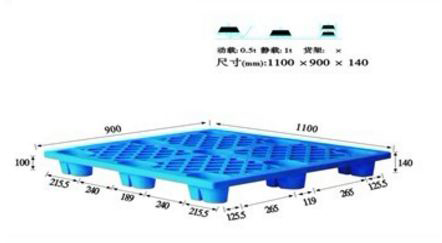 单面塑料托盘只能一面使用,表面有网格状和平板状两种,底部有川字型、田字型、九脚型。