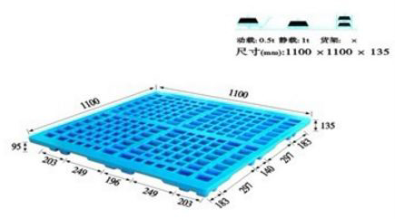 单面塑料托盘只能一面使用,表面有网格状和平板状两种,底部有川字型、田字型、九脚型。