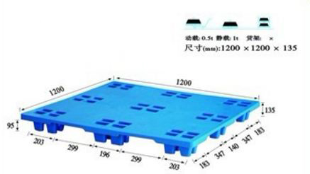 单面塑料托盘只能一面使用,表面有网格状和平板状两种,底部有川字型、田字型、九脚型。