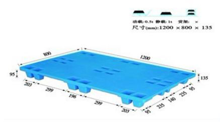 单面塑料托盘只能一面使用,表面有网格状和平板状两种,底部有川字型、田字型、九脚型。