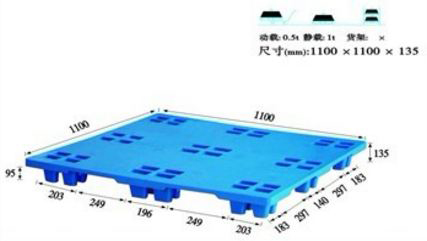 单面塑料托盘只能一面使用,表面有网格状和平板状两种,底部有川字型、田字型、九脚型。