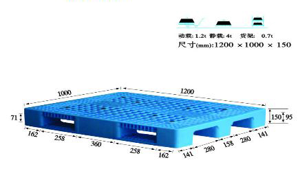 单面塑料托盘只能一面使用,表面有网格状和平板状两种,底部有川字型、田字型、九脚型。