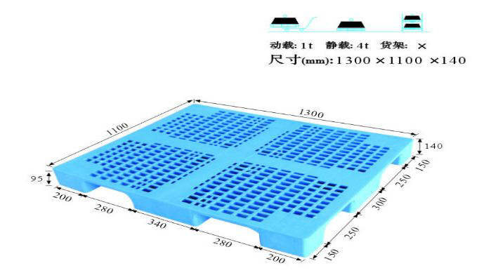 单面塑料托盘只能一面使用,表面有网格状和平板状两种,底部有川字型、田字型、九脚型。