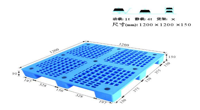 双面塑料托盘指托盘的正反两面结构相同,表面有网格状和平板状两种,两面可调换使用。选用单面托盘还是双面托盘,