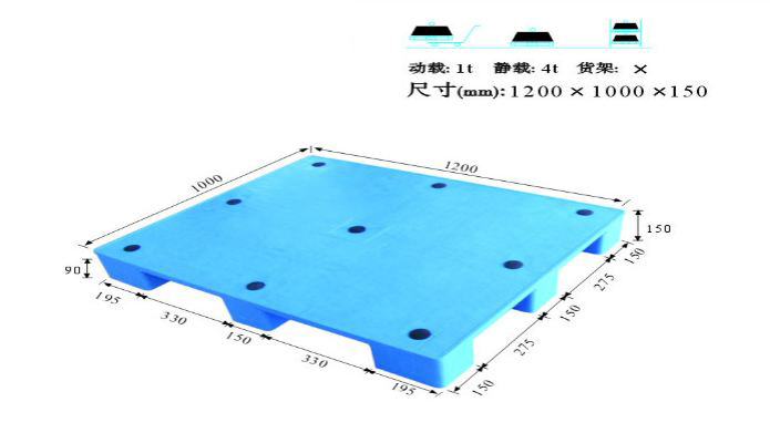 单面塑料托盘只能一面使用,表面有网格状和平板状两种,底部有川字型、田字型、九脚型。