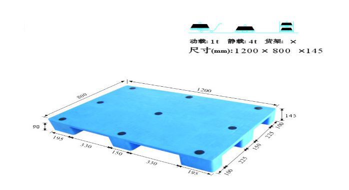 单面塑料托盘只能一面使用,表面有网格状和平板状两种,底部有川字型、田字型、九脚型。