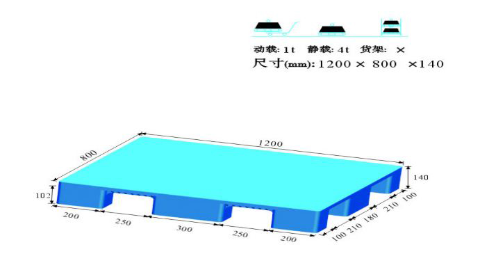 单面塑料托盘只能一面使用,表面有网格状和平板状两种,底部有川字型、田字型、九脚型。