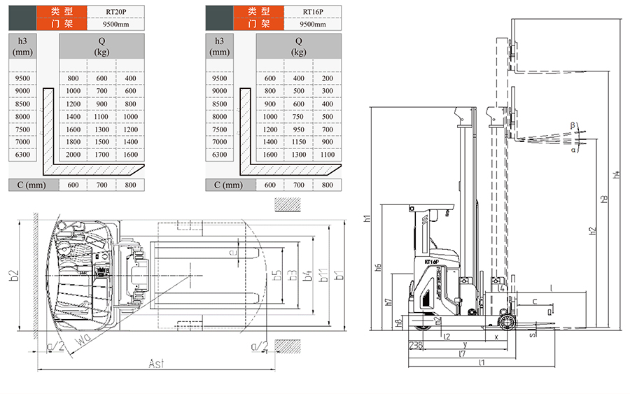 | 货叉架倾斜角度,前/后 | α/β(°) | 4°/-2° | 4°/-2° | 4°/-2° | 4°/-2° |